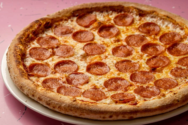 Тесто на пшеничной муке, сыр Моцарелла, колбаски пепперони. Соус в основу пиццы на ваш выбор томатный или сливочный.